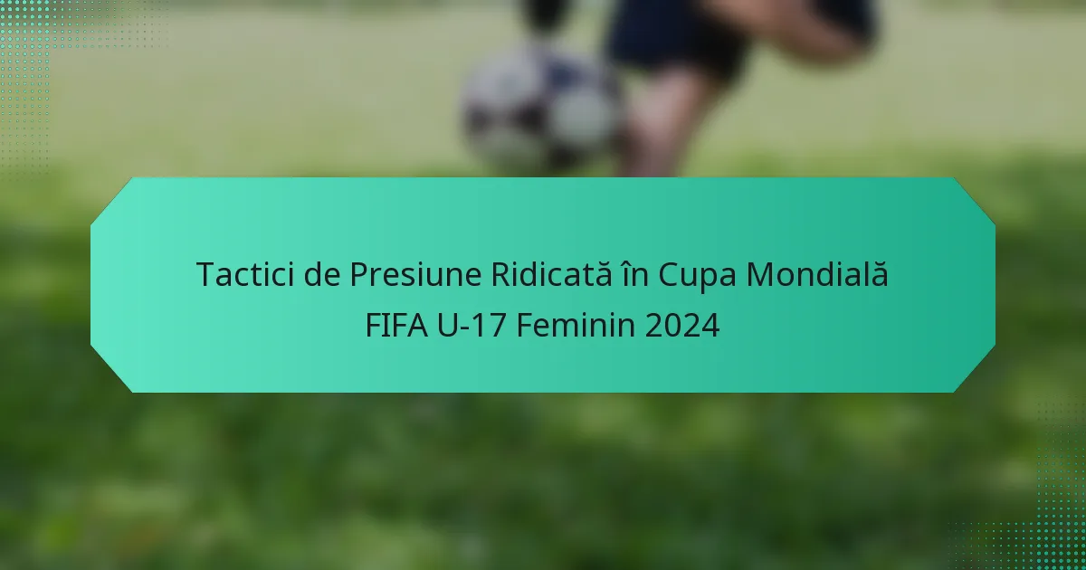 Cum sunt aplicate tacticile de pressing înalt în Cupa Mondială FIFA U-17 pentru Femei 2024?