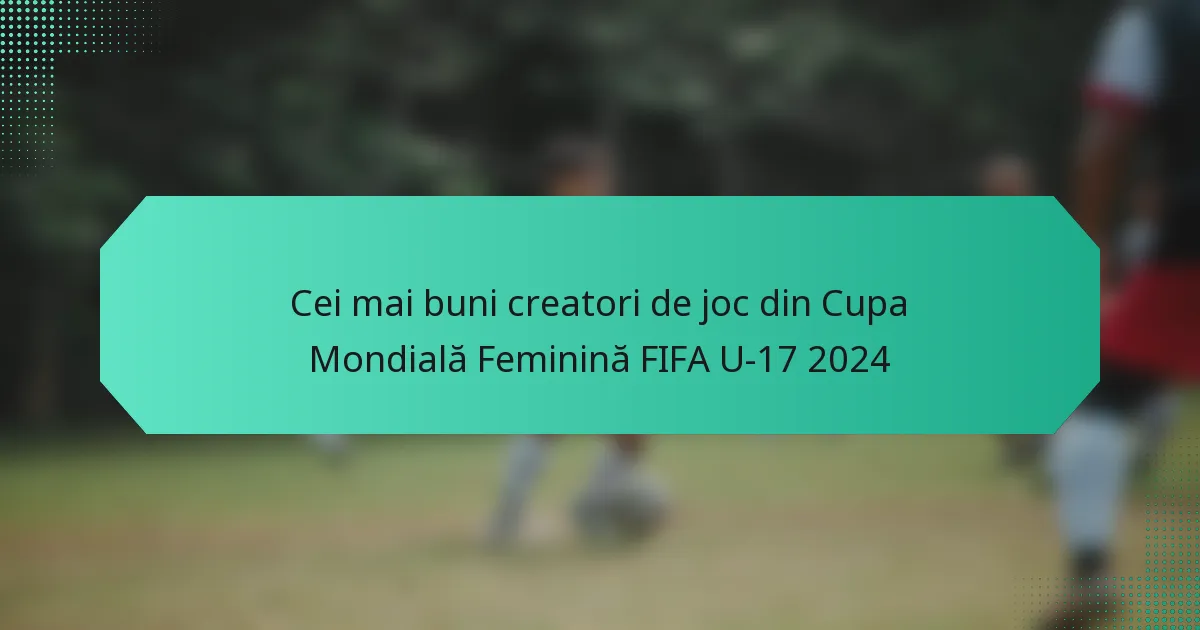 Cei mai buni playmakeri din Cupa FIFA U-17 pentru Femei 2024 prezintă o gamă de abilități și stiluri care influențează semnificativ performanțele echipelor lor. Prin analizarea punctelor forte, a slăbiciunilor și a contribuțiilor statistice, se poate înțelege mai bine rolul lor în turneu.